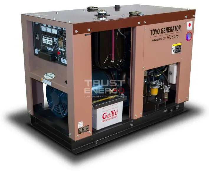 Дизельный генератор Toyo TG-14SPC номинальной мощностью 11 кВт с двигателем Kubota - отличный электроагрегат демонстрирующий уверенный приём нагрузки как резервный источник питания, так и основной.